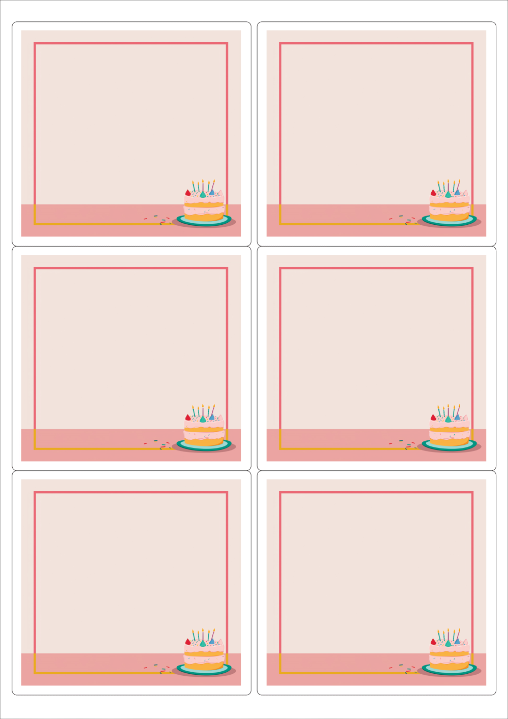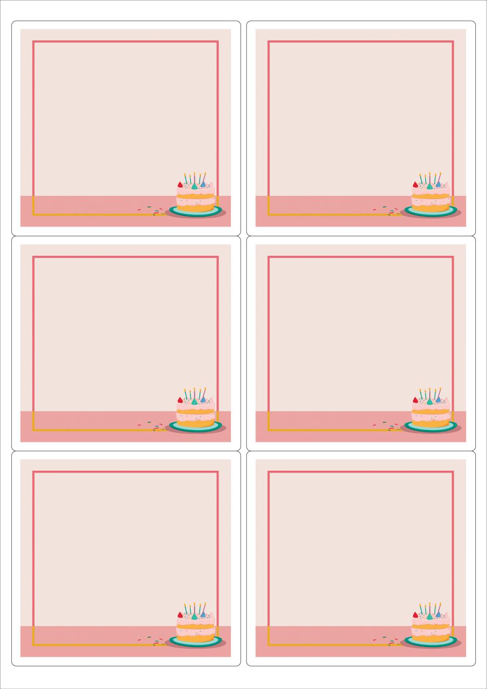 출력용 A4 스티커 디자인 라벨지, 규격코드: 223, 디자인코드: DA1396(생일 축하해요), 98.8 x 92.7 (mm)