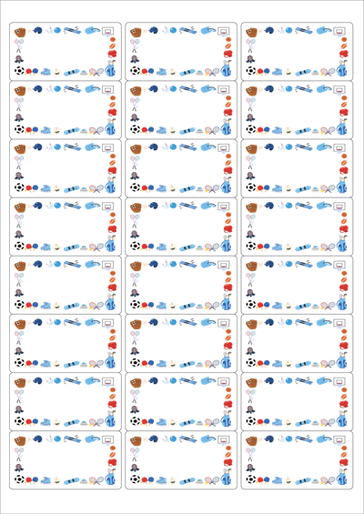 출력용 A4 스티커 디자인 라벨지, 규격코드: 238, 디자인코드: DA777(어떤 스포츠 좋아하세요?), 64.5 x 33.71 (mm)
