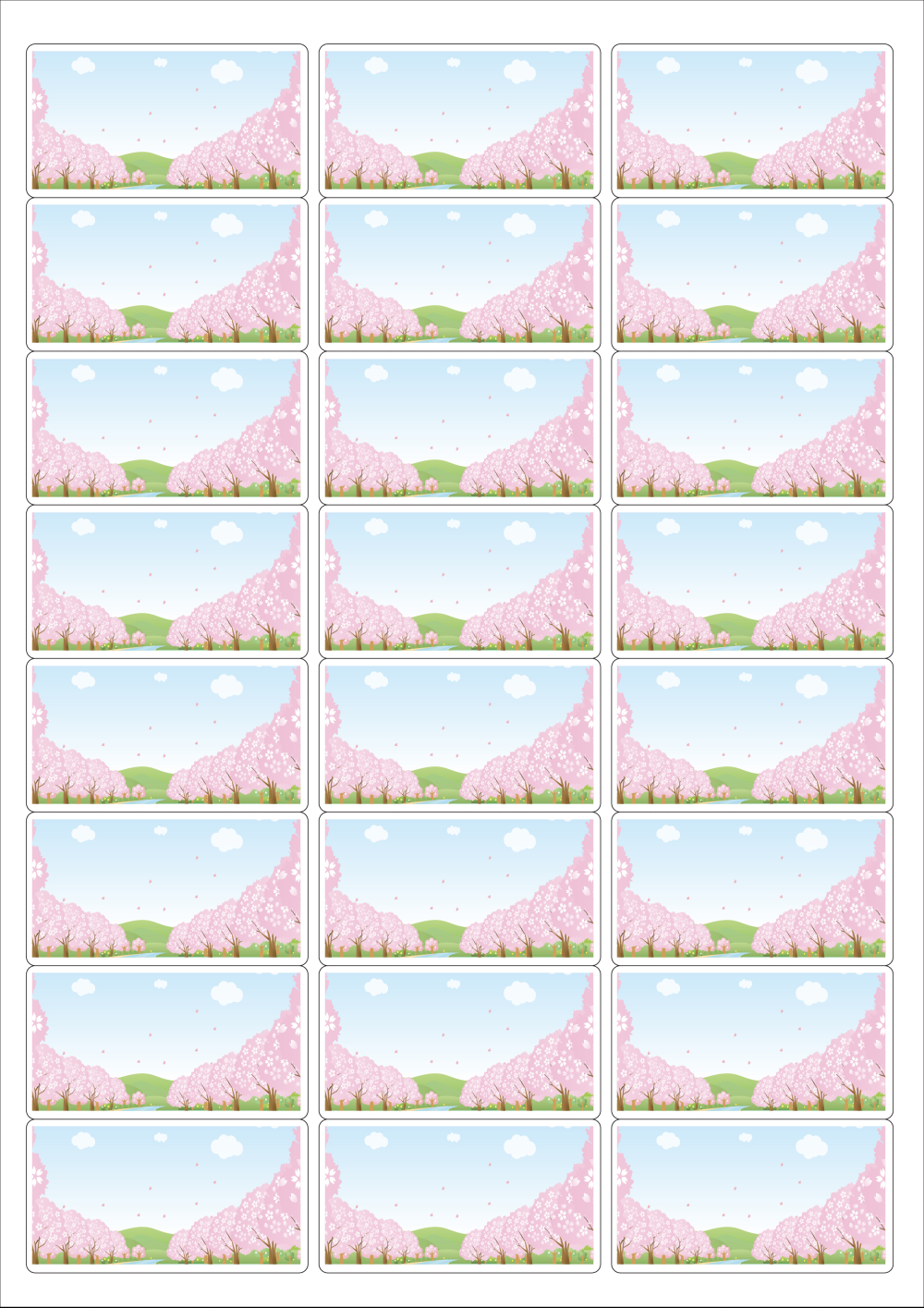 출력용 A4 스티커 디자인 라벨지, 규격코드: 438, 디자인코드: DA500(벚꽃잎 가득한 거리에서 한장~), 64 x 34.9 (mm)