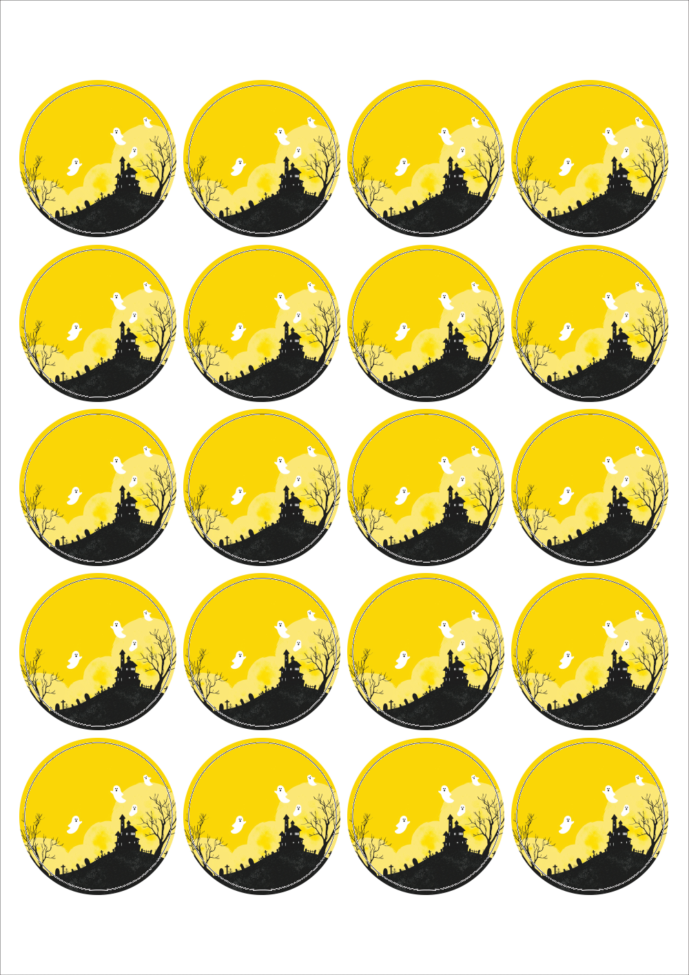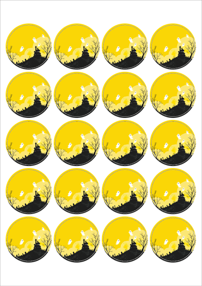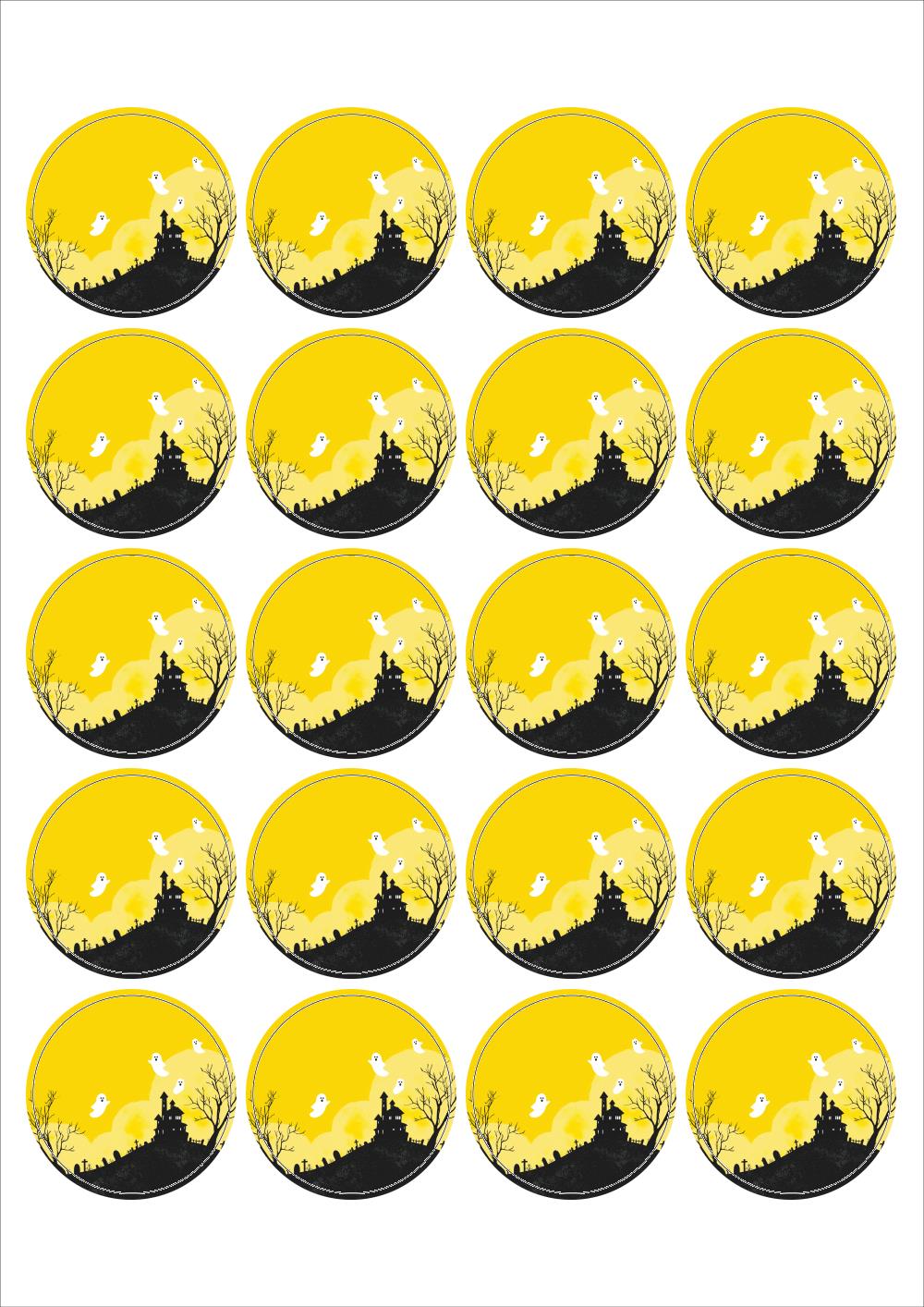 출력용 A4 스티커 디자인 라벨지, 규격코드: 520, 디자인코드: DA1381(할로윈의 밤을 즐기세요), Φ45 (mm) 원형