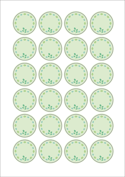 출력용 A4 스티커 디자인 라벨지, 규격코드: 546, 디자인코드: DA1232(녹색둘레), Φ38.1 (mm) 원형