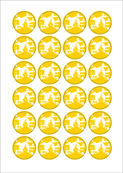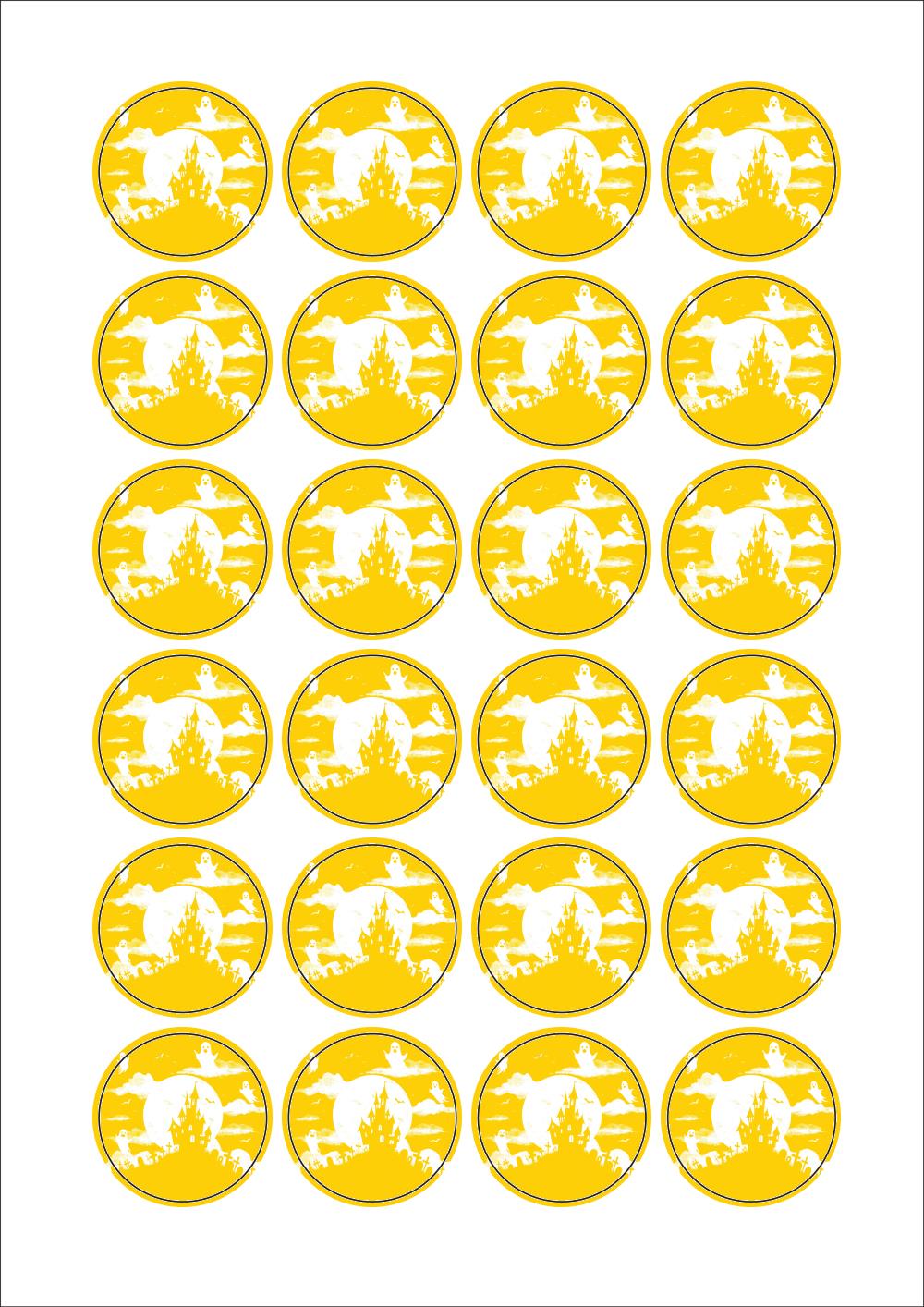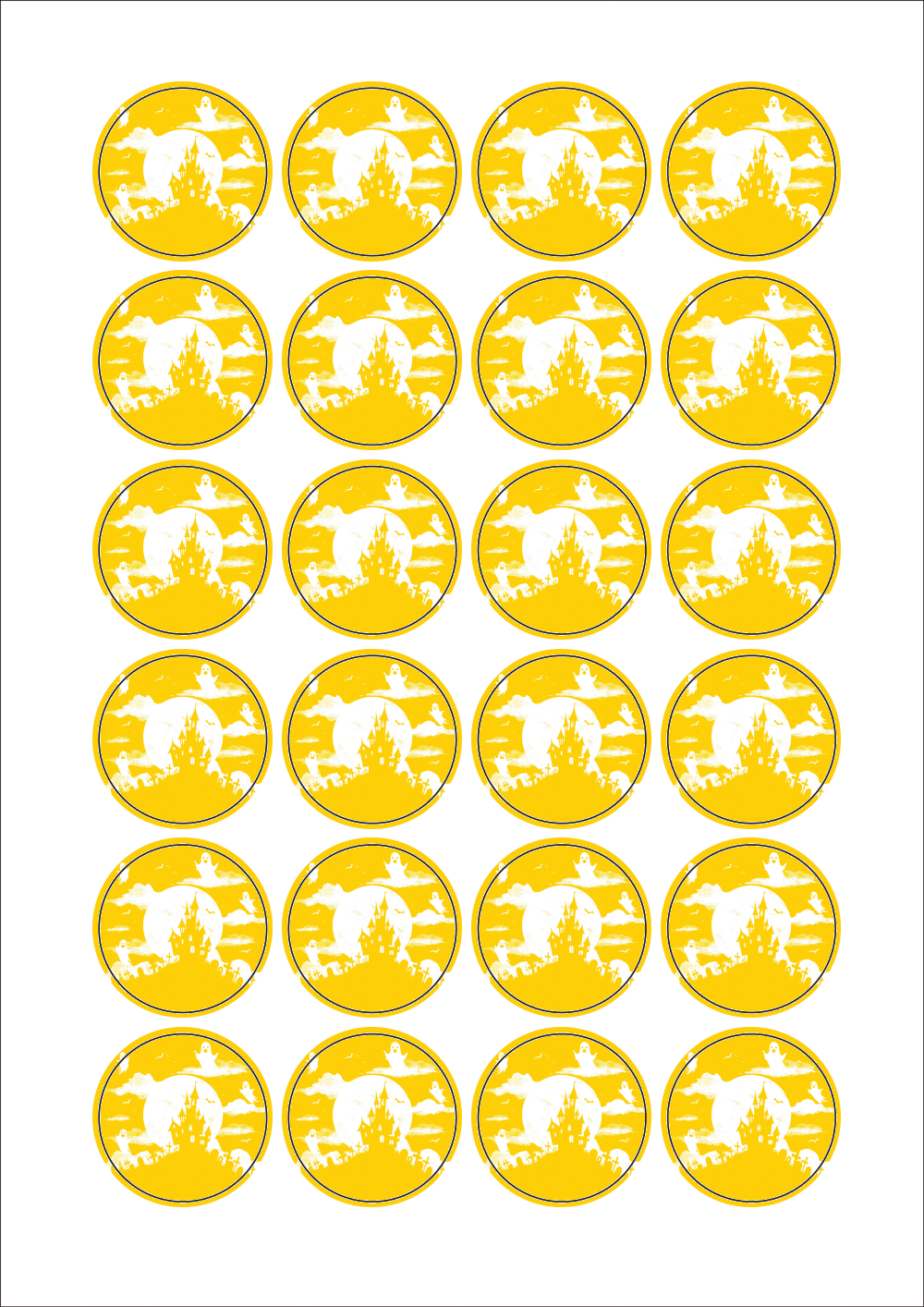 출력용 A4 스티커 디자인 라벨지, 규격코드: 546, 디자인코드: DA1380(할로윈 성에 초대 받았어요), Φ38.1 (mm) 원형