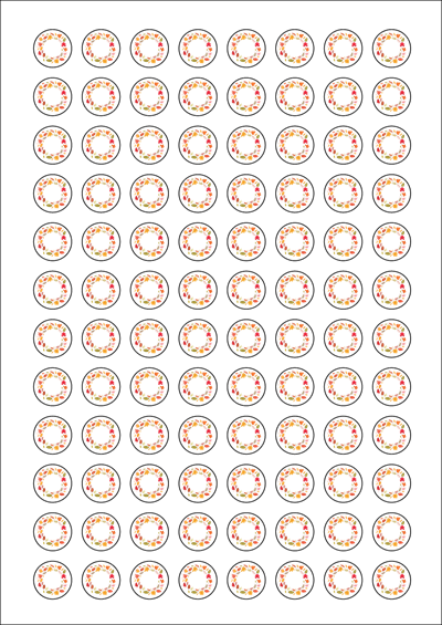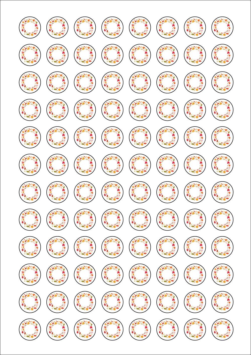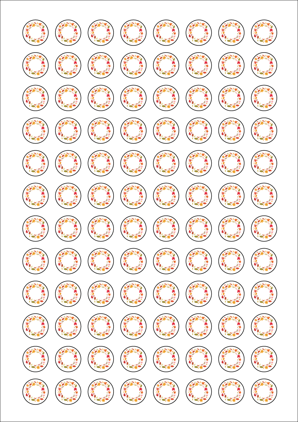 출력용 A4 스티커 디자인 라벨지, 규격코드: 596, 디자인코드: DA1400(가을 프레임), Φ18 (mm) 원형