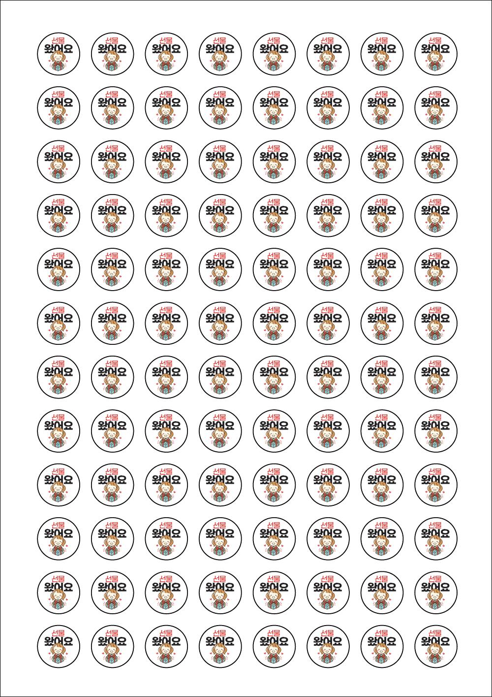 출력용 A4 스티커 디자인 라벨지, 규격코드: 596, 디자인코드: FA021(선물 왔어요(증정품 스티커)), Φ18 (mm) 원형