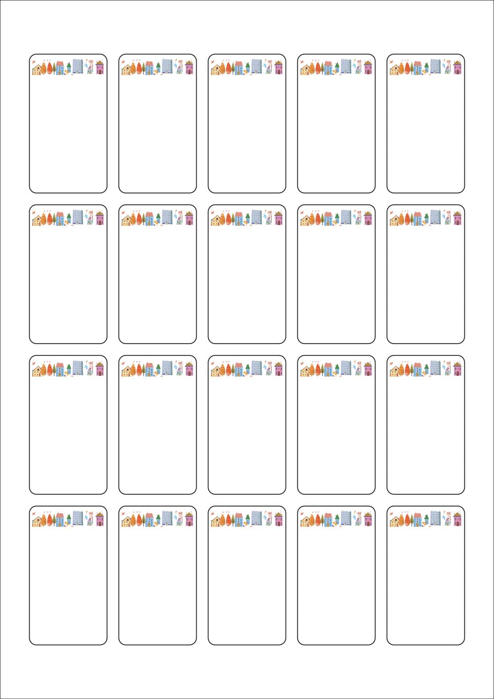 출력용 A4 스티커 디자인 라벨지, 규격코드: 654, 디자인코드: DN096(동화속 거리), 33 x 59 (mm)