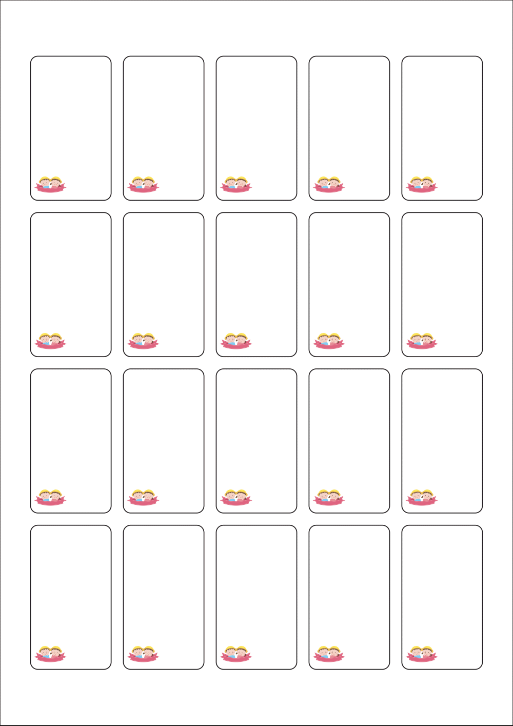 출력용 A4 스티커 디자인 라벨지, 규격코드: 654, 디자인코드: DX035(하이 방가방가), 33 x 59 (mm)