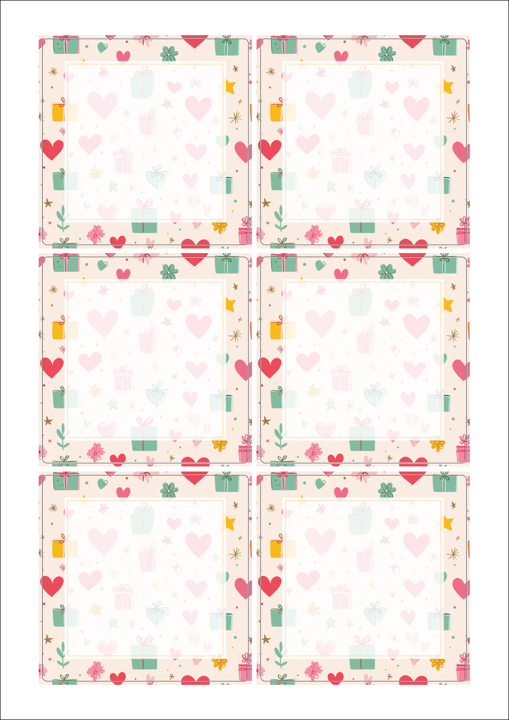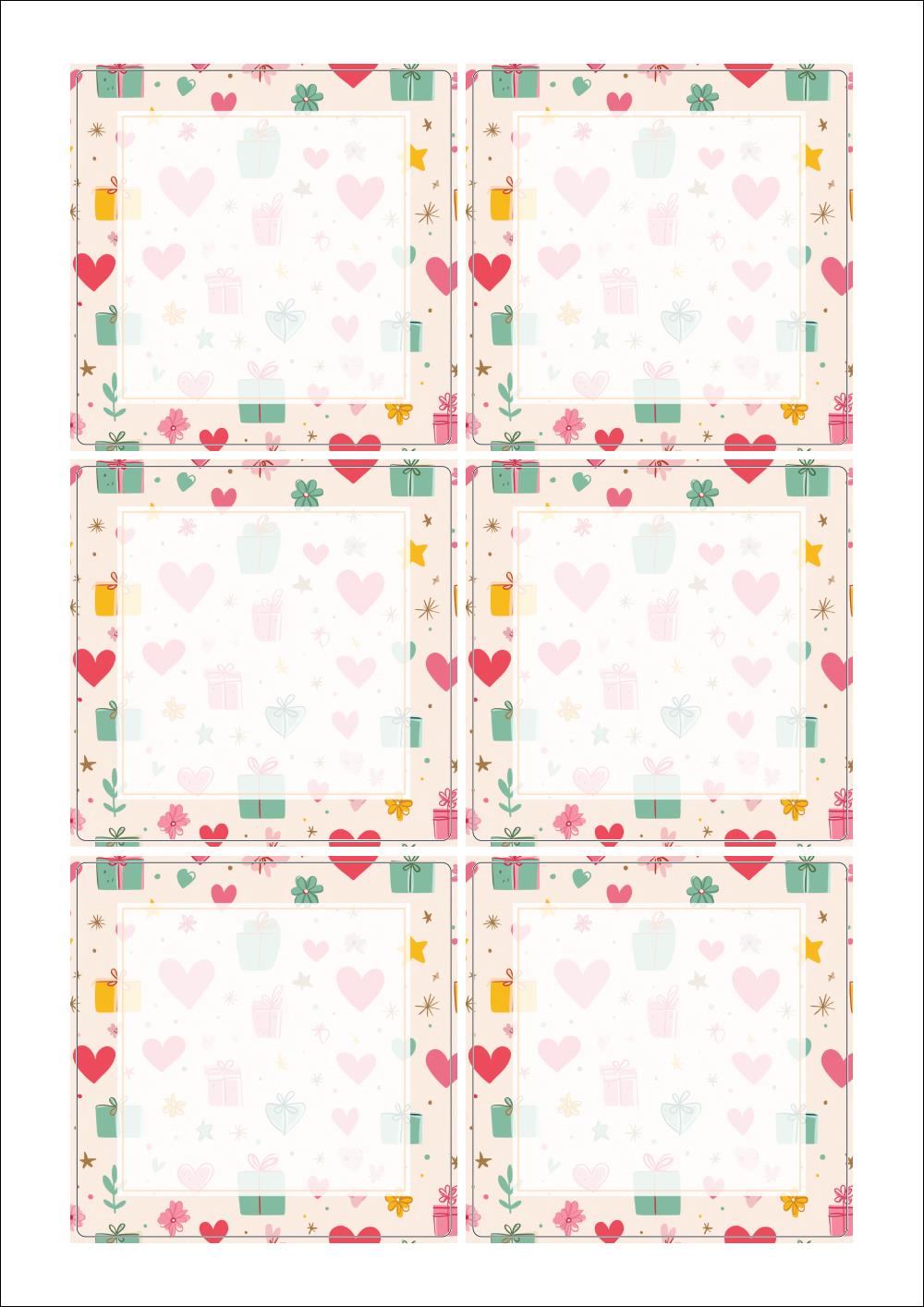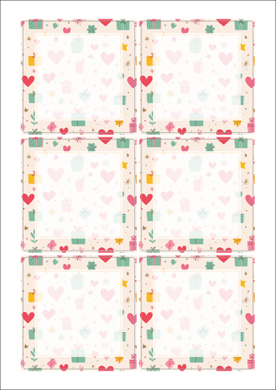 출력용 A4 스티커 디자인 라벨지, 규격코드: 823, 디자인코드: DA1393(선물 하트 포장지), 85 x 85 (mm)