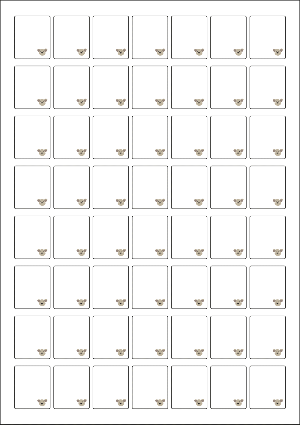 출력용 A4 스티커 디자인 라벨지, 규격코드: 978, 디자인코드: DV112(알고 있니? 코알라~), 25 x 30 (mm)