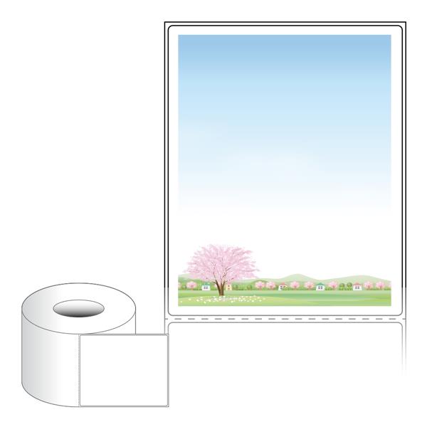 출력용 롤타입 스티커 디자인 라벨지, 규격코드: RL100124, 디자인코드: DA886(큰 벚꽃나무 마을), 100 x 124 (mm) , 지관: 75mm