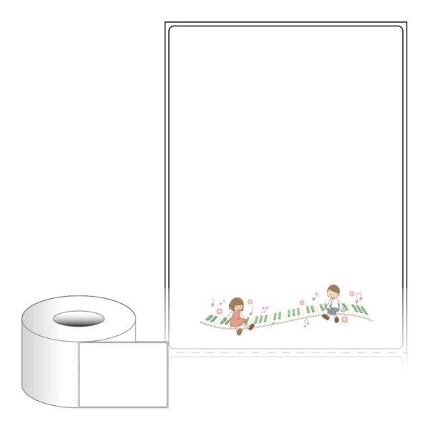 출력용 롤타입 스티커 디자인 라벨지, 규격코드: RL90124, 디자인코드: DP093(멜로디 속에 아이들), 90 x 124 (mm) , 지관: 75mm