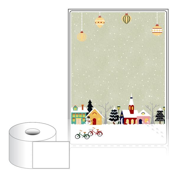 출력용 롤타입 스티커 디자인 라벨지, 규격코드: RS90124, 디자인코드: DA1068(크리스마스에 눈이 옵니다), 90 x 124 (mm) , 지관: 40mm