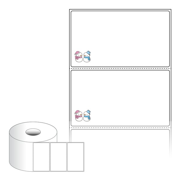 출력용 롤타입 스티커 디자인 라벨지, 규격코드: RS9554, 디자인코드: DX197(한겨울의 꼬마 눈사람), 95 x 54 (mm) , 지관: 40mm