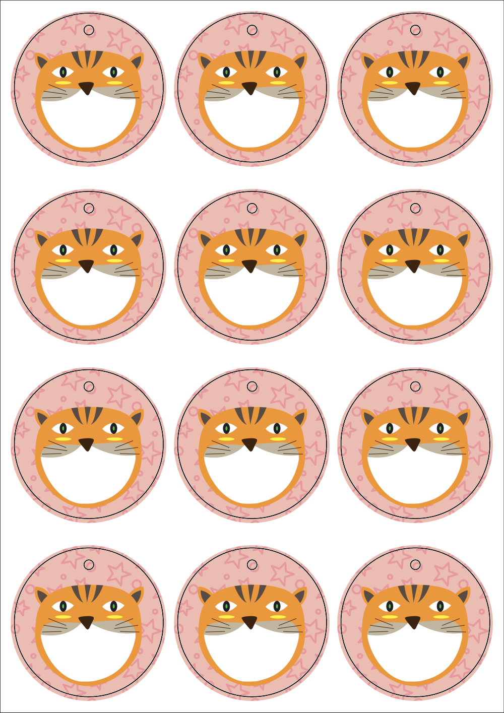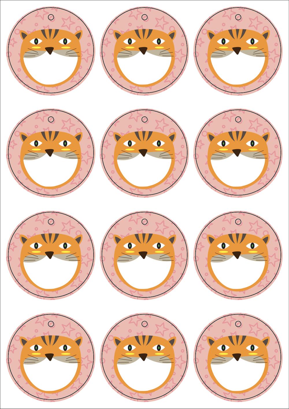 출력용 A4 디자인 택, 규격코드: TLH0121, 디자인코드: DA943(안냥하세요. 냐옹~), Φ62 (mm)