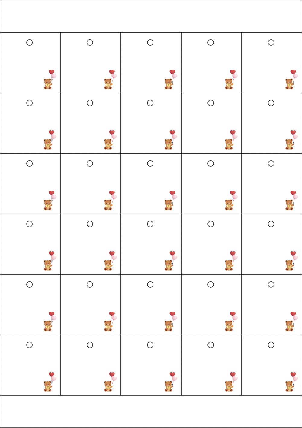 출력용 A4 디자인 택, 규격코드: TLH0301, 디자인코드: DV028(사랑의 전령 곰), 42 x 42 (mm)